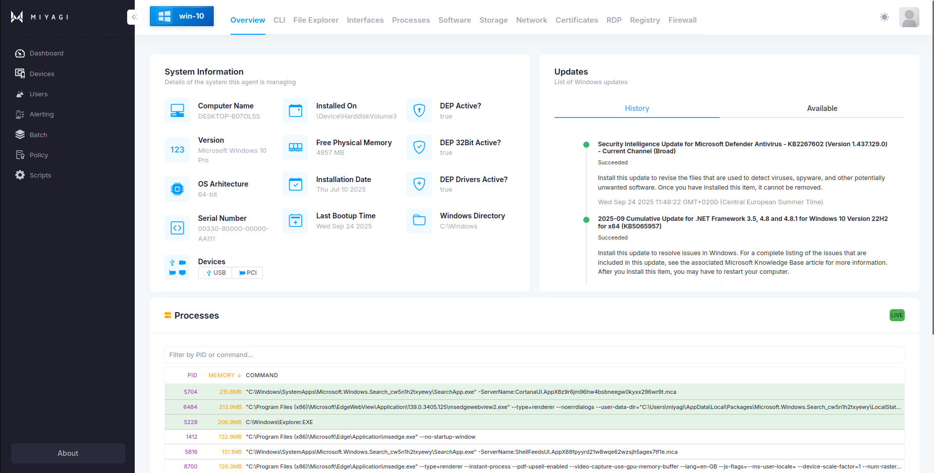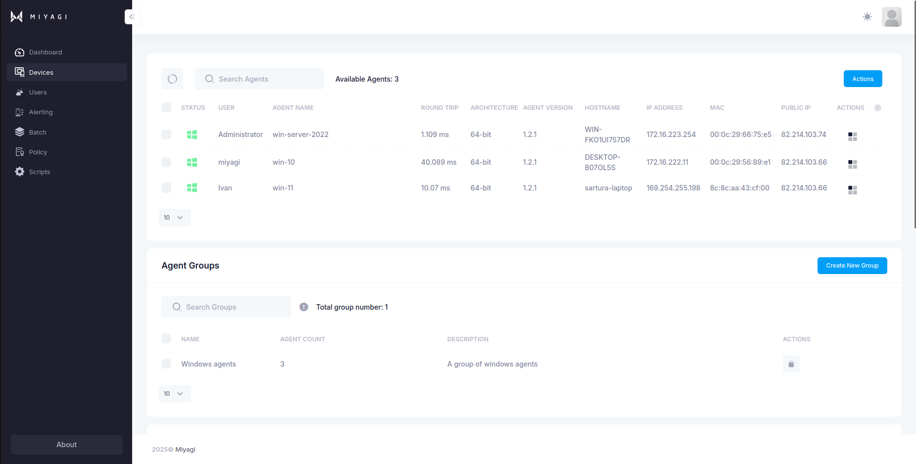 Deploy Miyagi on your infrastructure to gain comprehensive device management capabilities.